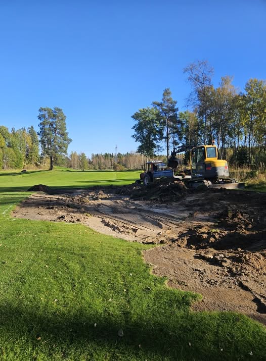 Utöver nya tees på banan så ska våra bunkrar få sig en översyn. Hål 2 greenbunker klar och vi går vidare med båda greenbunkrarna på hål 15.
